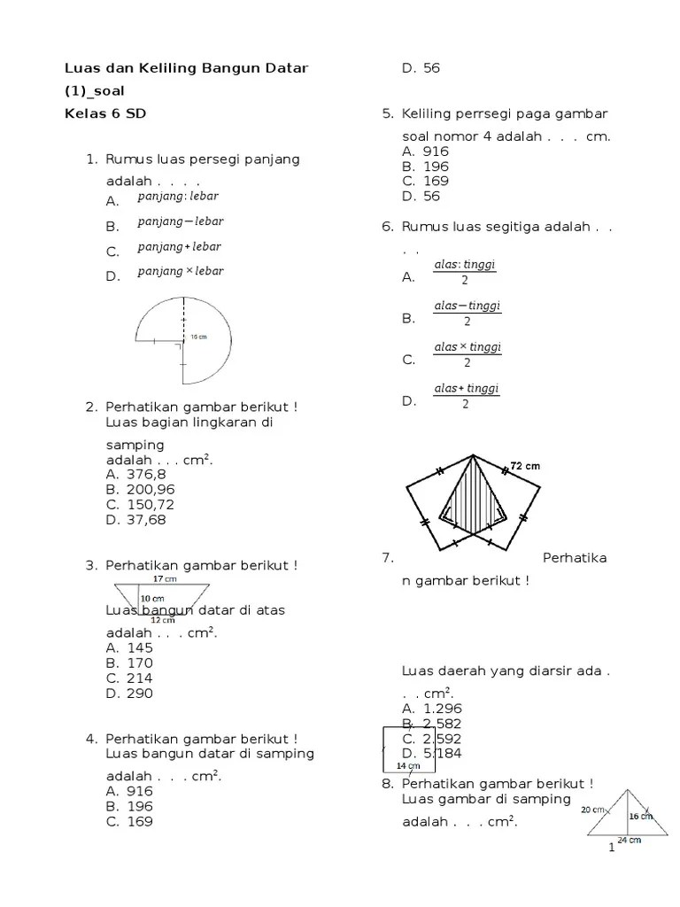 Soal Luas Dan Keliling Bangun Datar Kelas 4 Pdf / Soal Ulangan Matematika Kelas 6 Keliling Dan Luas Lingkaran Sekolahdasar Net : Ilustrasi menghitung luas dan keliling bangun datar persegi panjang /pixabay/ josemdelaa .